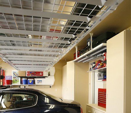 Our complete Garage Storage Solutions will allow you to see your garage floor again! Our quality Racks and Shelves eliminate wasted space by installing them above your garage door, and at the same time create valuable new storage space and added room and gets the Garage Organized. A ceiling mounted rack system works perfectly for the organization of the many items that aren't used everyday, but can still take up valuable floor space.